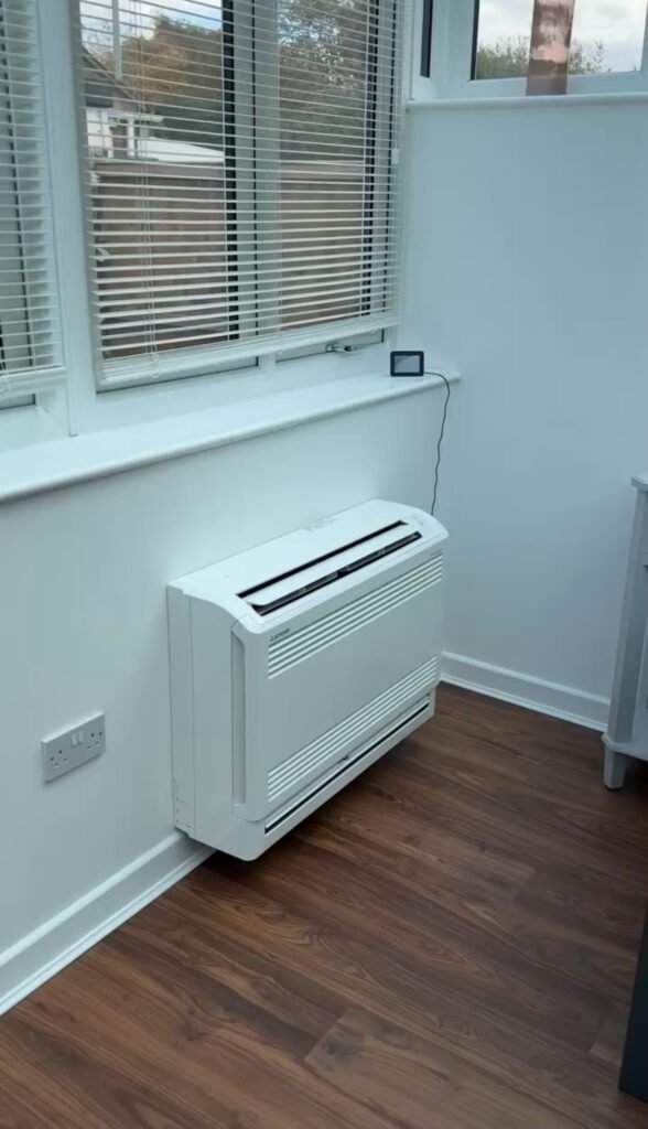 The floor standing unit is a similar option to the wall mounted system, this type of unit is also wall mounted at ground level unlike the wall mounted system which is typically located 15-30cm from the ceiling for installation regulations involving air circulation. The floor standing unit resembles the look of a radiator – modernised.